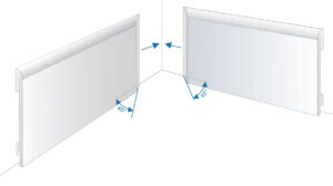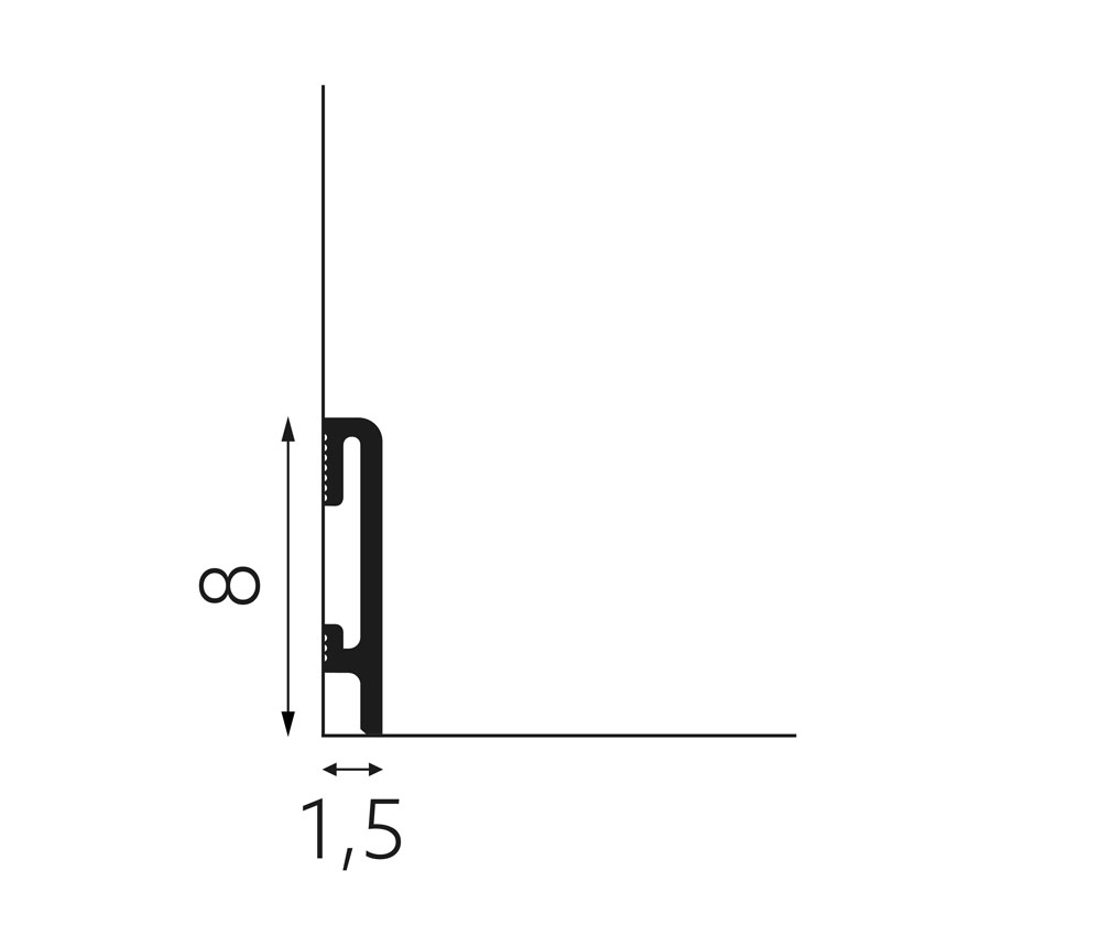 Om de plint aan de zichtbare zijde esthetisch af te werken, zaagt u het uiteinde van het profiel en de plint zelf in een hoek van 45 graden, zoals aangegeven in de onderstaande tekening. Lijm het zo ontstane uiteinde met Indesign Fix Pro lijm aan de plint.