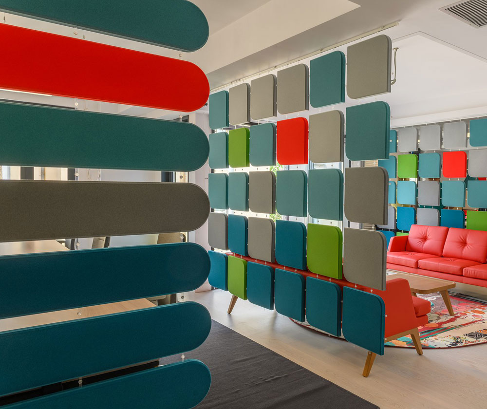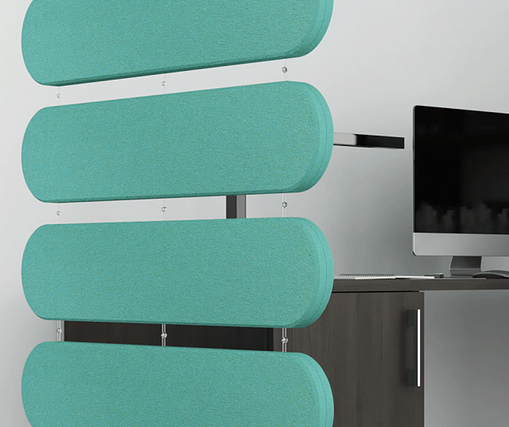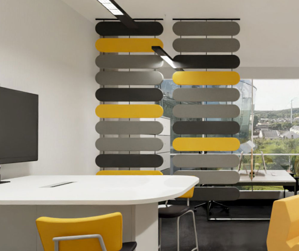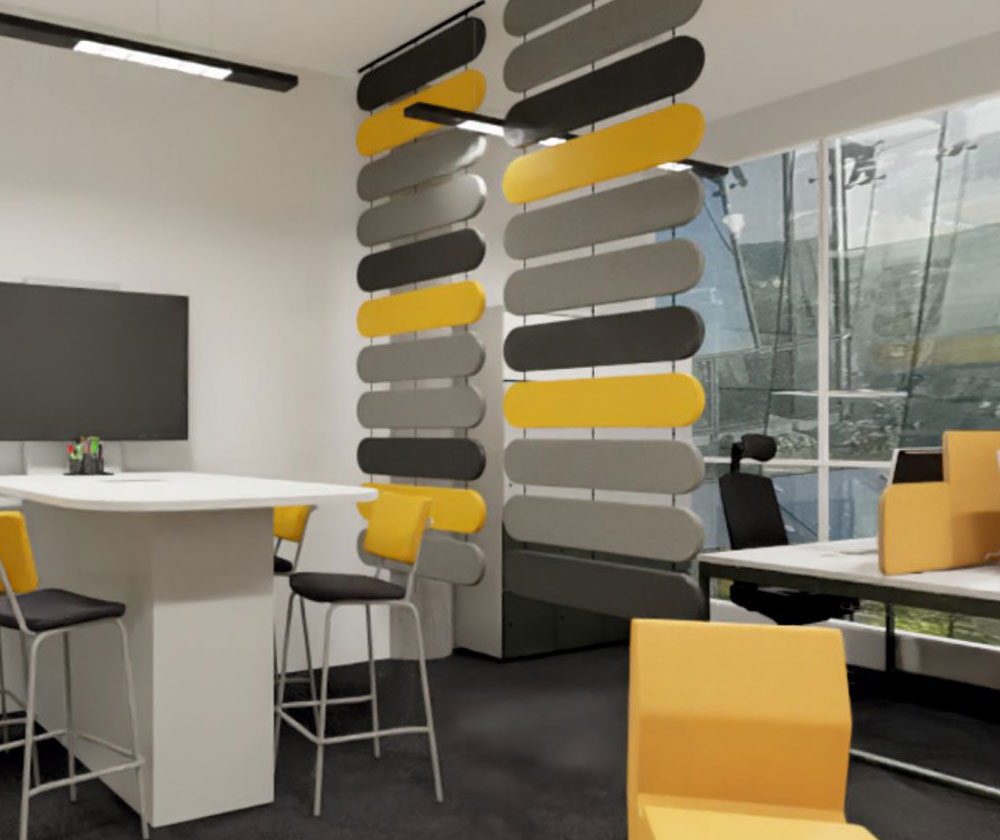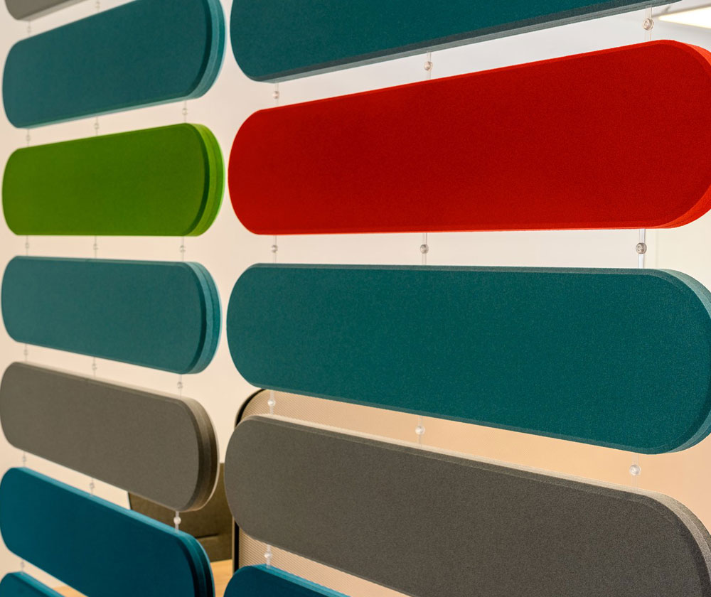 Fluffo WEB akoestische room dividers dienen verschillende doelen: ze absorberen effectief geluid, verdelen de ruimte visueel en vormen een uniek decoratief element. Ze zijn een geweldige oplossing voor interieurs waar de installatie van andere akoestische materialen beperkt is.