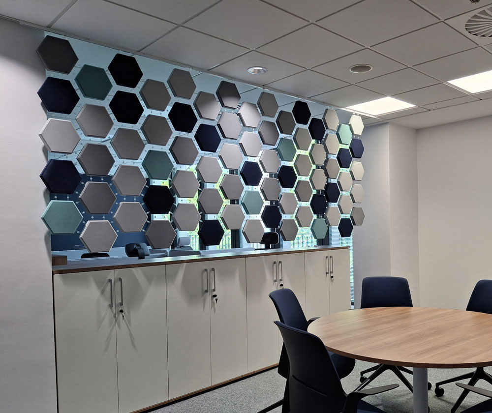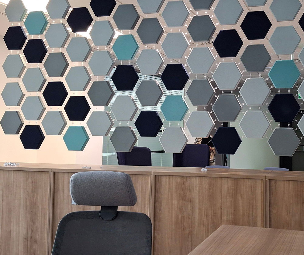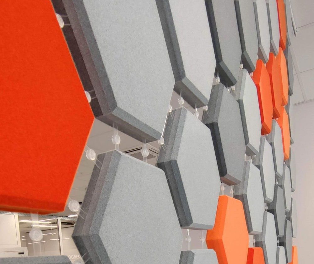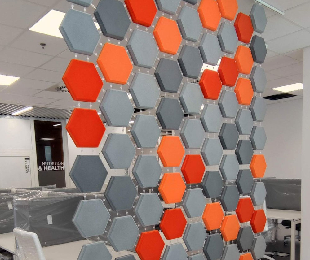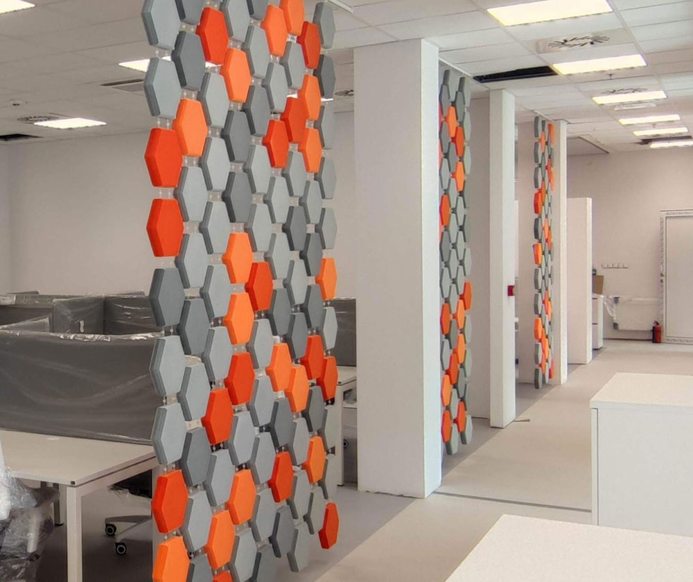 Fluffo WEB akoestische room dividers dienen verschillende doelen: ze absorberen effectief geluid, verdelen de ruimte visueel en vormen een uniek decoratief element. Ze zijn een geweldige oplossing voor interieurs waar de installatie van andere akoestische materialen beperkt is.