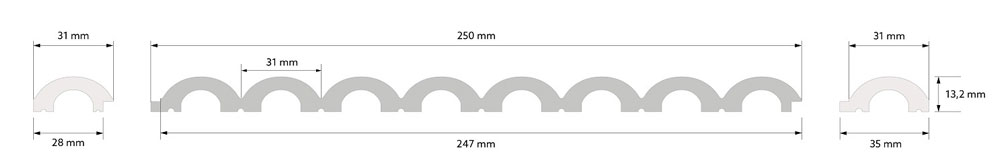 Duna panelen met een halfrond patroon zijn het meest trendy interieur ontwerp element voor het decoreren van muren en andere ruimtes in uw huis. Het is gemaakt van duurzaam en resistent PolyForce materiaal. De panelen zijn volledig waterdicht en u kunt ze in elke gewenste kleur verven. Ze hebben akoestische eigenschappen, waardoor onaangename nagalm in het interieur wordt geëlimineerd. De Duna kan ook in vochtige ruimtes gebruikt worden.