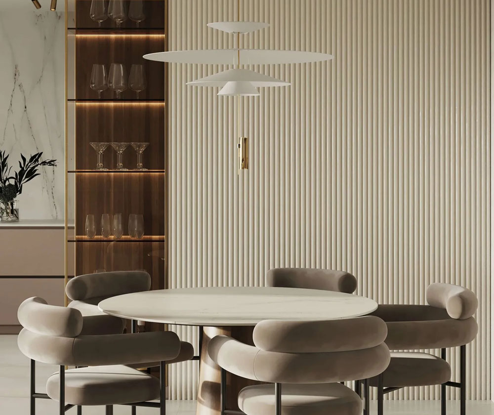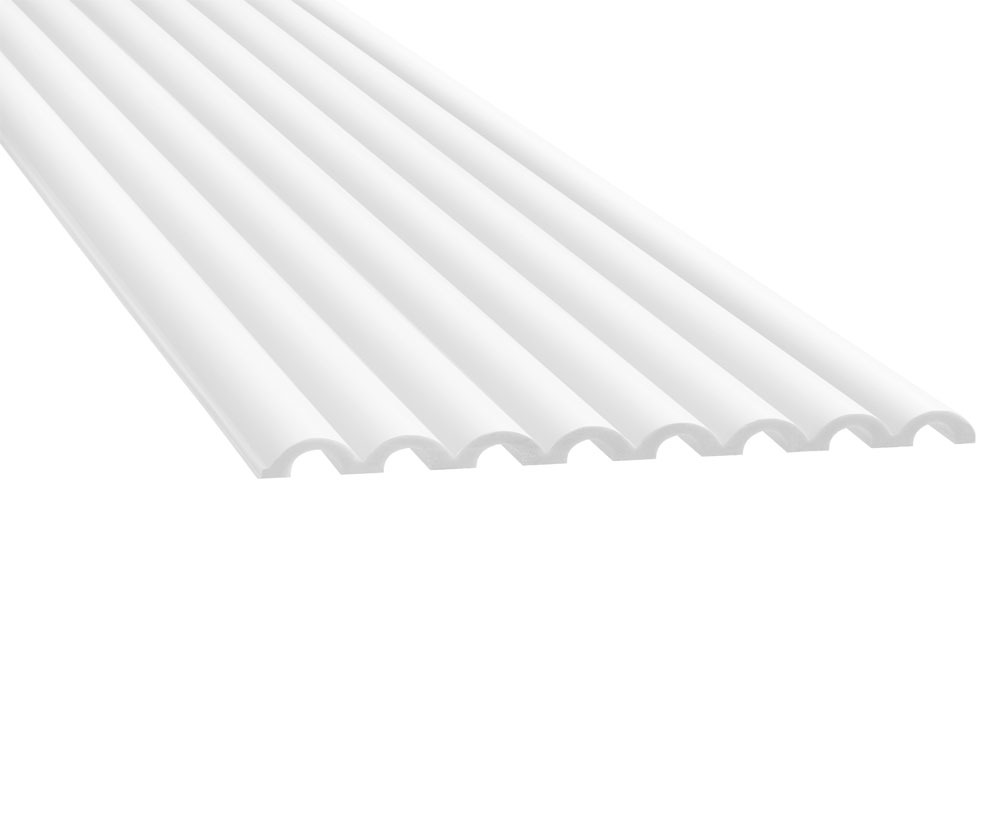 Duna panelen met een halfrond patroon zijn het meest trendy interieur ontwerp element voor het decoreren van muren en andere ruimtes in uw huis. Het is gemaakt van duurzaam en resistent PolyForce materiaal. De panelen zijn volledig waterdicht en u kunt ze in elke gewenste kleur verven. Ze hebben akoestische eigenschappen, waardoor onaangename nagalm in het interieur wordt geëlimineerd. De Duna kan ook in vochtige ruimtes gebruikt worden.