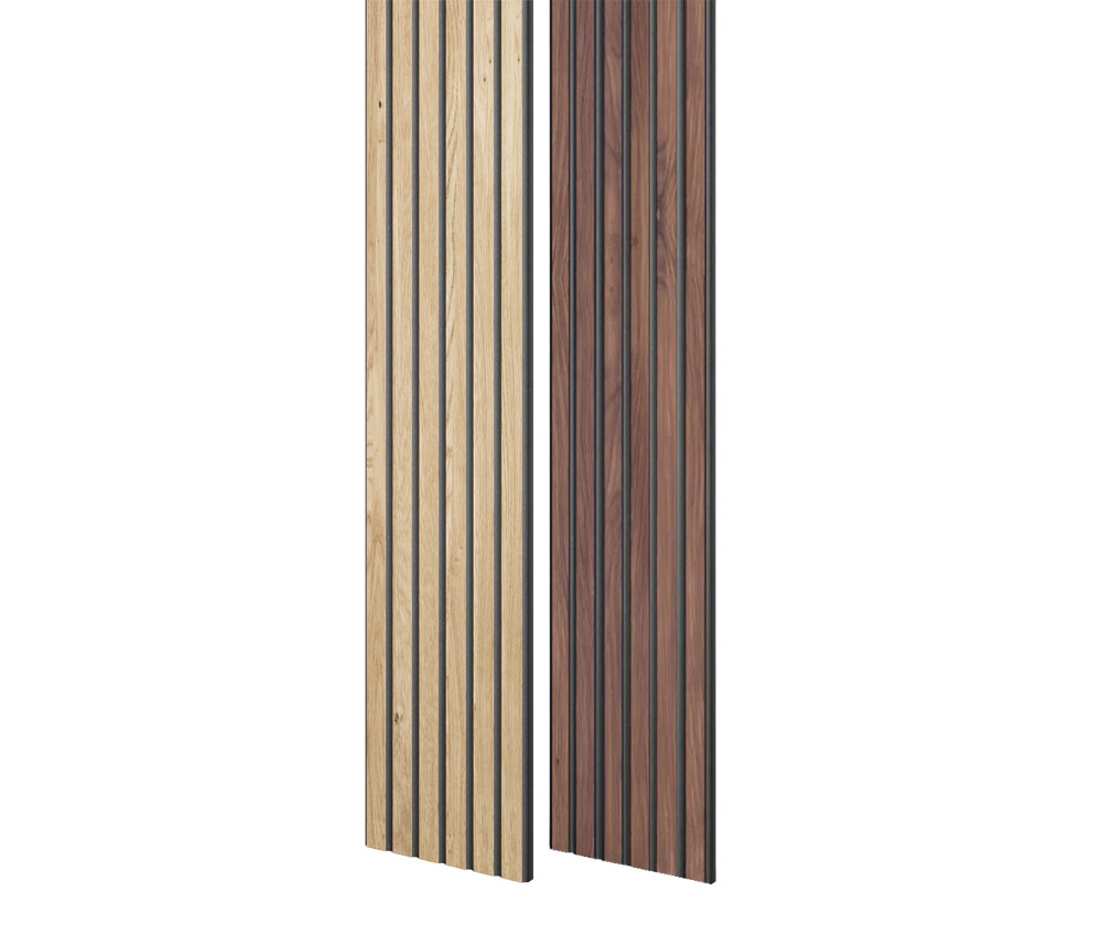 Ze zijn verkrijgbaar in vierkante of rechthoekige varianten en kunnen verticaal of horizontaal worden geplaatst, niet alleen op wanden, maar ook op plafonds. Dankzij de oppervlaktebescherming met olie heeft het product geen extra onderhoud nodig. Wij bieden zowel effen als patroonmodellen aan in de vorm van lamellen die in verschillende hoeken zijn geplaatst.