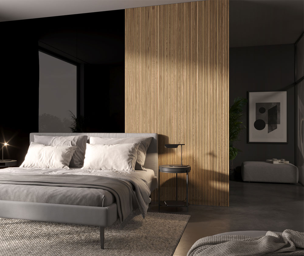 Groove panelen zijn een ideale optie voor liefhebbers van onconventionele wanddecoratie. De oplossingen die wij aanbieden, onderscheiden zich door de kwaliteit van het vakmanschap, wat zich vertaalt in de duurzaamheid van de decoratie en een onconventioneel design, verfijnd tot in het kleinste detail. De Groove panelen zijn gemaakt van zwarte MDF-plaat, bedekt met een laag natuurlijk eiken of walnoot fineer.