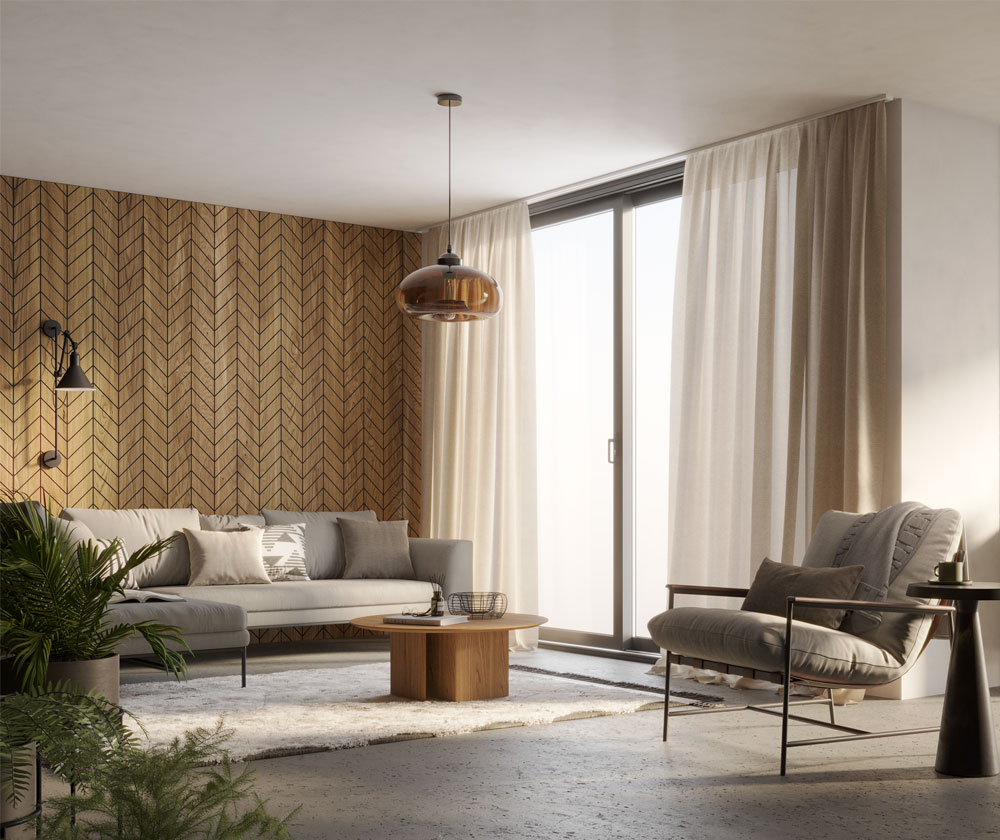 Modern design is niet alles – het product heeft een positief effect op de akoestiek van het gedecoreerde interieur en vermindert lawaai en echo. Een aangename structuur gecombineerd met een elegante uitstraling maakt de producten perfect voor zowel woningen als commerciële ruimtes.