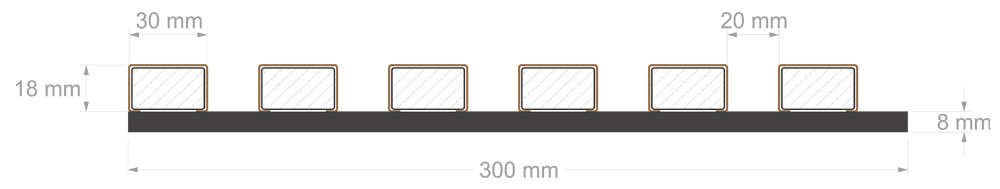 De lamellen op vilt die wij aanbieden zijn akoestische panelen met extra grote lamellen. Akoestische panelen met lamellen zijn ontworpen om de galm in de ruimte te minimaliseren. De profielen zijn gemaakt van massief MDF-plaatmateriaal en dankzij het naadloze fineer zien de lamellen er van alle kanten fraai uit. Het vilt is 8 mm dik en weegt 1500 g/m2. Hierdoor beschikt het over uitstekende akoestische eigenschappen en voelt het prettig aan. Het vilt dat wij gebruiken bestaat voor 60-80% uit gerecyclede materialen (PET-flessen).