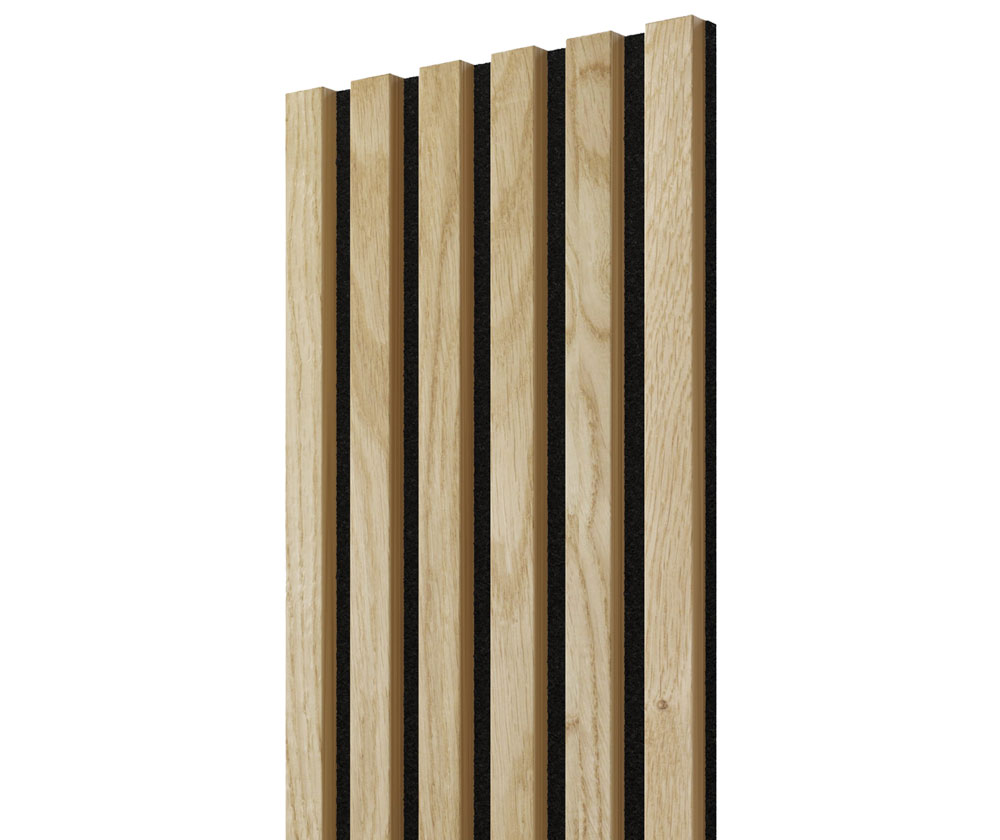 Afwerking : vilt met mdf latten met 3-zijde houtstructuur fineer