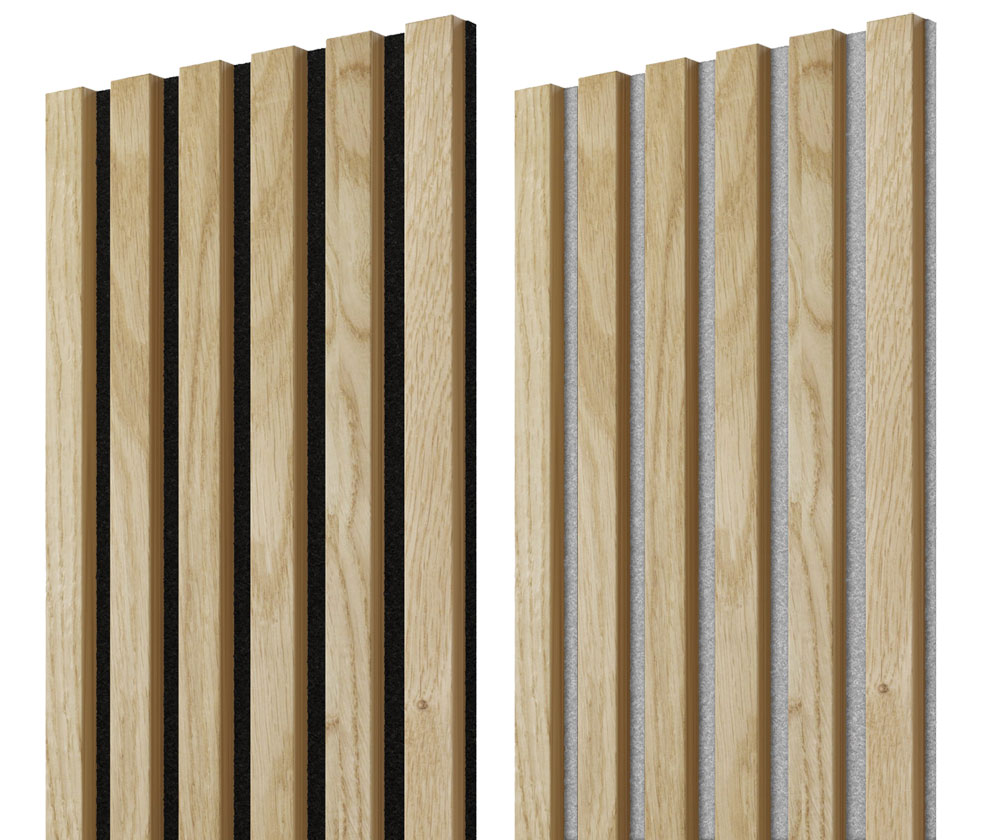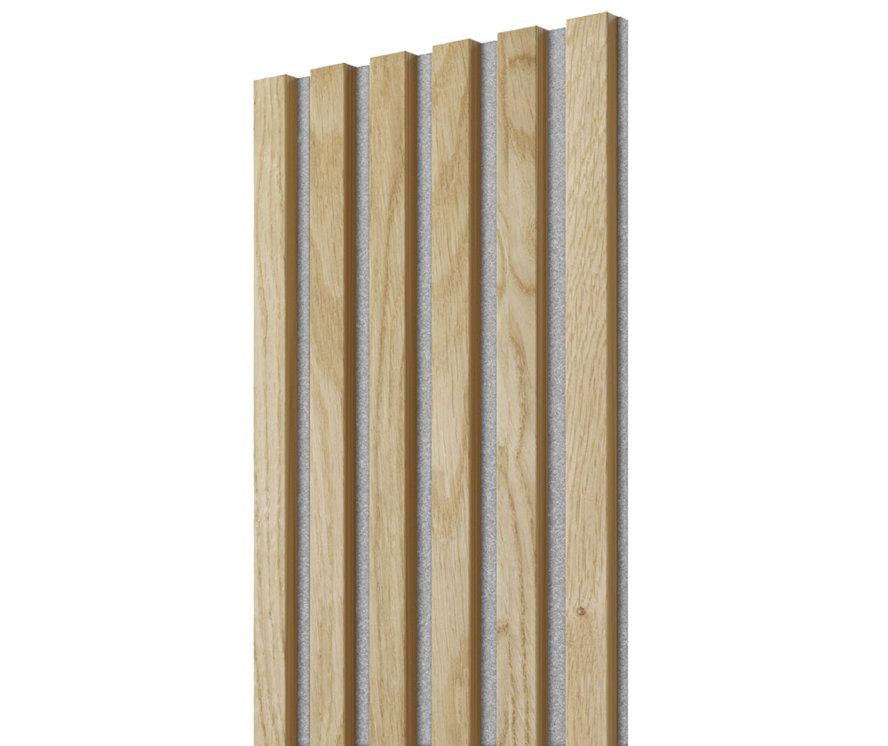 De lamellen op vilt die wij aanbieden zijn akoestische panelen met extra grote lamellen. Akoestische panelen met lamellen zijn ontworpen om de galm in de ruimte te minimaliseren. De profielen zijn gemaakt van massief MDF-plaatmateriaal en dankzij het naadloze fineer zien de lamellen er van alle kanten fraai uit. Het vilt is 8 mm dik en weegt 1500 g/m2. Hierdoor beschikt het over uitstekende akoestische eigenschappen en voelt het prettig aan. Het vilt dat wij gebruiken bestaat voor 60-80% uit gerecyclede materialen (PET-flessen).